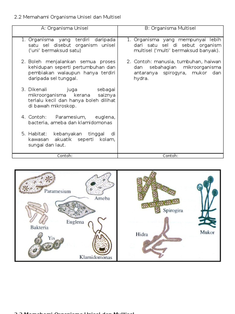 Contoh Organisma Unisel Dan Multisel Worksheet